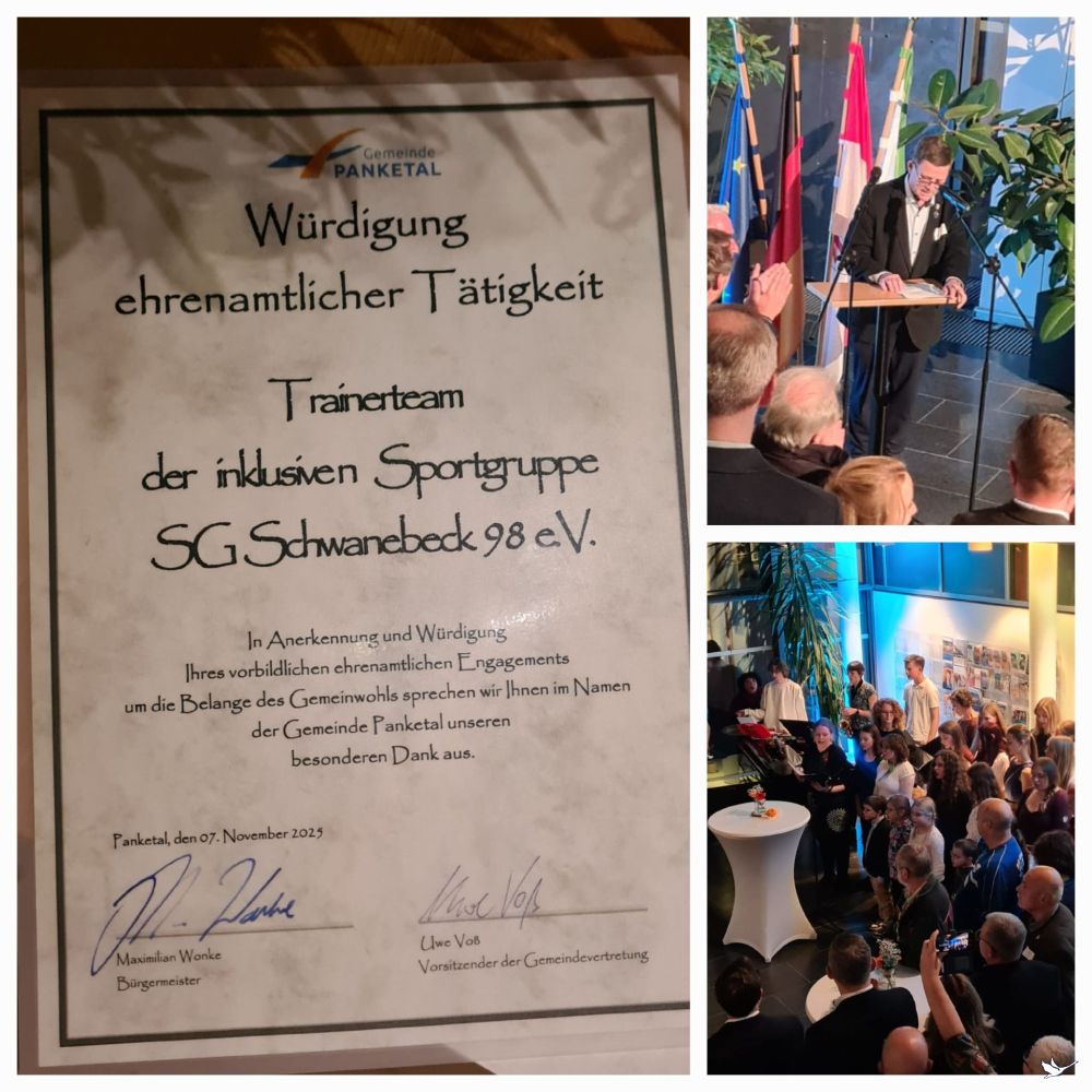 Unsere Trainer der Sportgruppe Inklusiv wurden am 07.11. im Rahmen des Gemeindeempfangs der Gemeinde Panketal für das Engagement und die Ehrenamtliche Arbeit ausgezeichnet.